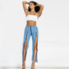 Melody Mid Waist Light Blue Denim Zipper
